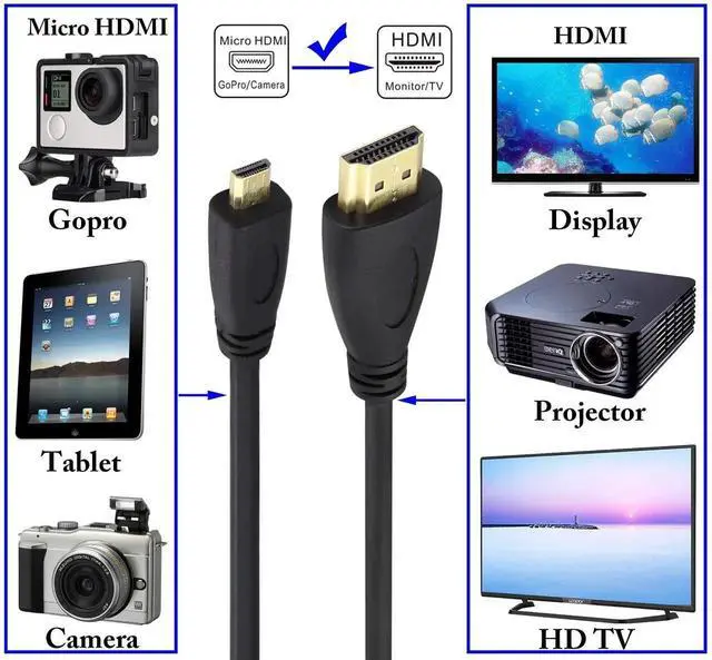 Micro HDMI to HDMI extension cable,The one end of the product is a Micro HDMI male port, and the other end is a standard HDMI male port.