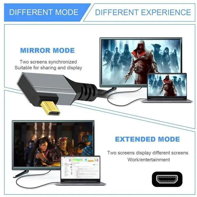 Angled Connector Design: 90 Degree Left Angled Mini HDMI, The angled type Allowing you to connect it to a female port, even if space around the port is limited.