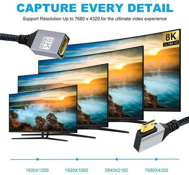 8K Type-C Mini HDMI 2.1 Male 90 Degree Left Angled to HDMI Female Extension HDTV Cable for DV Camera Laptop Portable Monitor