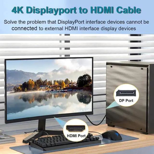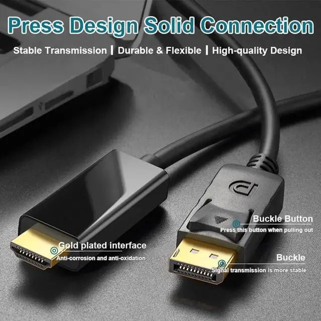 DisplayPort to HDMI, 4K DisplayPort (DP) to HDMI 6 Feet Cable Compatible with HP, ThinkPad, AMD, NVIDIA, Desktop and More - Male to Male. 4K DisplayPort to HDMI, 6.6ft Uni-Directional DP (Source) to HDMI (Display) 1.4 Cable, 4K@30Hz, 2K@60Hz, 1080P Full HD, Braided Cord for Dell, NVIDIA, AMD, Monitor, Projector