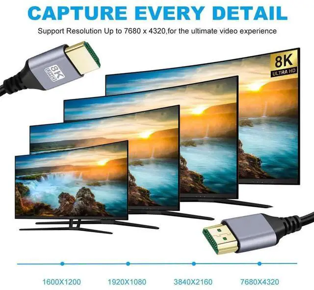 HIGH SPEED: Industry standard 48Gbs bandwidth allows for unrestricted video in 8K (UHD) 1440p (QHD) and 1080p (HD). Enjoy unparalleled video quality, crisp and accurate sound, and buffer-free ethernet connection with these PowerBear HDMI cables.