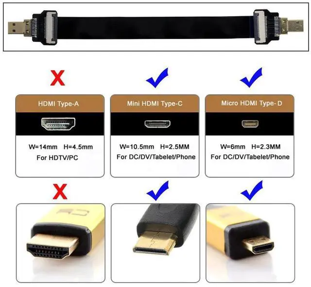 CYFPV Micro HDMI Male to Male Extension FPC Flat Cable 1080P for FPV HDTV Multicopter Aerial Photography 0.5M