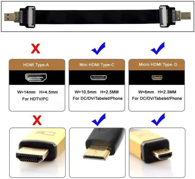 CYFPV Micro HDMI Male to Male Extension FPC Flat Cable 1080P for FPV HDTV Multicopter Aerial Photography 0.2M