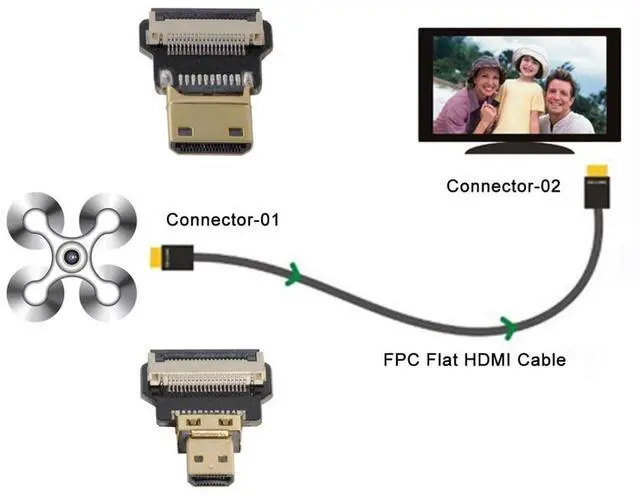 CYFPV Micro HDMI to Mini HDMI Extension FPC Flat Cable 1080P for FPV HDTV Multicopter Aerial Photography 0.5M