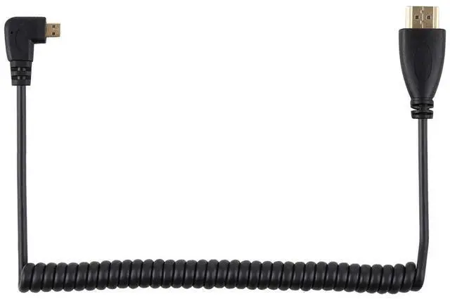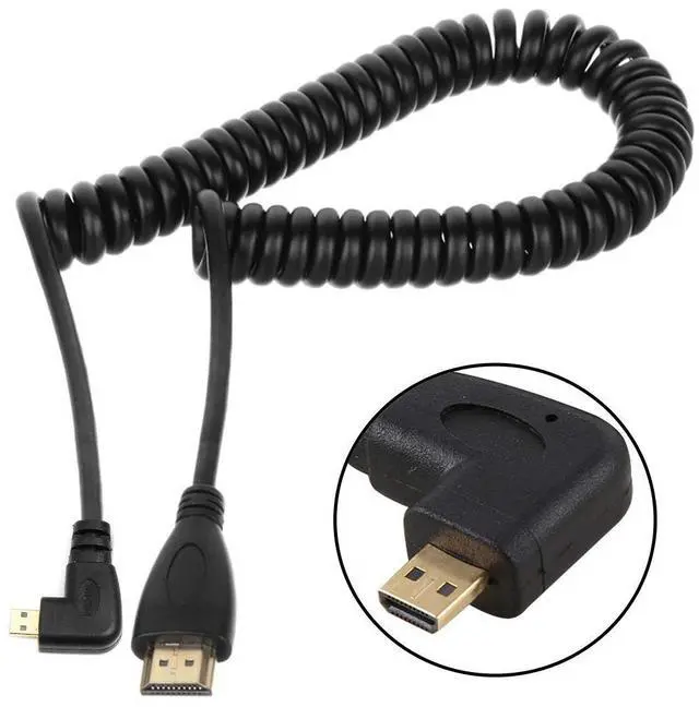 Stretch Coilded Right Angled 90 Degree Micro HDMI to HDMI Male HDTV Cable for Cell Phone & Tablet & Camera (Right Angled)