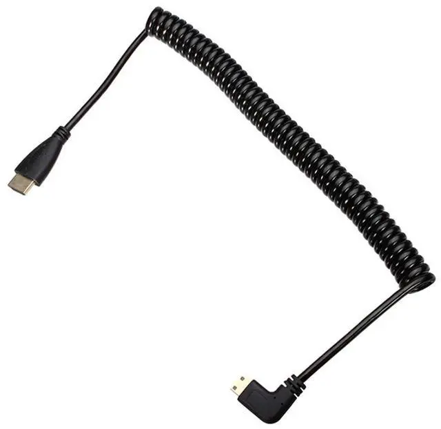 HDMI to Mini HDMI 90 Degree Right Angled Stretch Coiled Cable 4K 60hz 1.2M