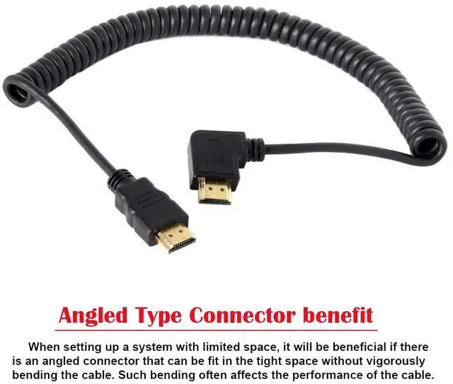 The angled type Allowing you to connect it to a female port, even if space around the port is limited.