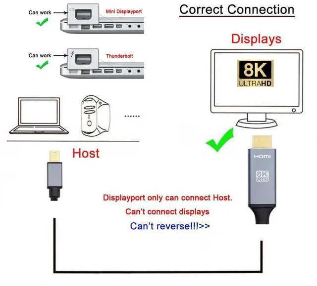 Mini Displayport to HDMI cable supports 8K@60Hz, 4K@60Hz for Mini DisplayPort Enabled Desktops and Laptops to Connect to HDMI Displays, enjoy home theater with 8K/4K high resolution.