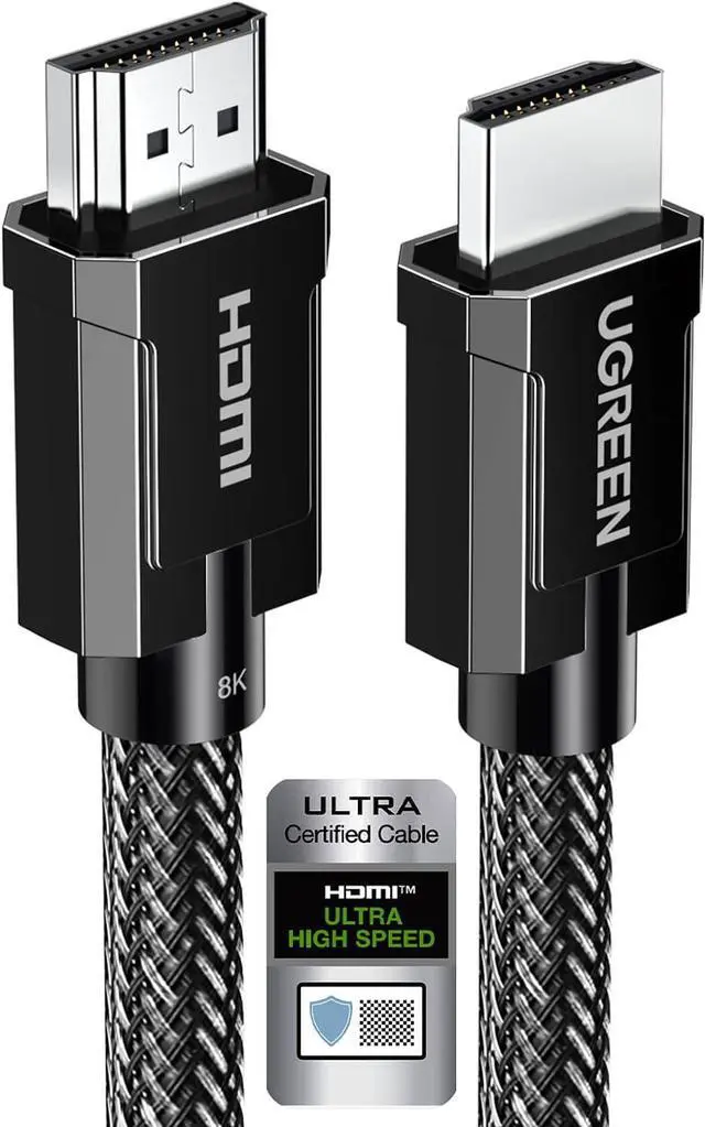 Durable HDMI 2.1 certified cable: UGREEN HDMI 2.1 cable is HDMI 2.1 certified, with a certification code attached to the package, which can be checked. This 8K HDMI cable is tougher than any other braid cable since it has armor nylon and all-metal port has longer service life and will never rupture