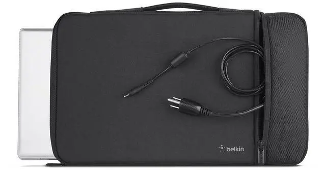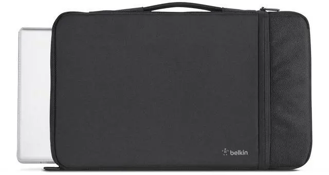 The Belkin Air Protect Sleeve is not only about safeguarding your device; it also features a sleek, lightweight design that enhances portability. Whether you choose to use the convenient retractable carrying handle or prefer to slide it into a backpack, transporting your Chromebook is hassle-free. This sleeve also includes a dedicated bottom pocket, a smart addition that provides secure storage for your charger and other essential accessories, ensuring your Chromebook remains protected even when carrying extra items.