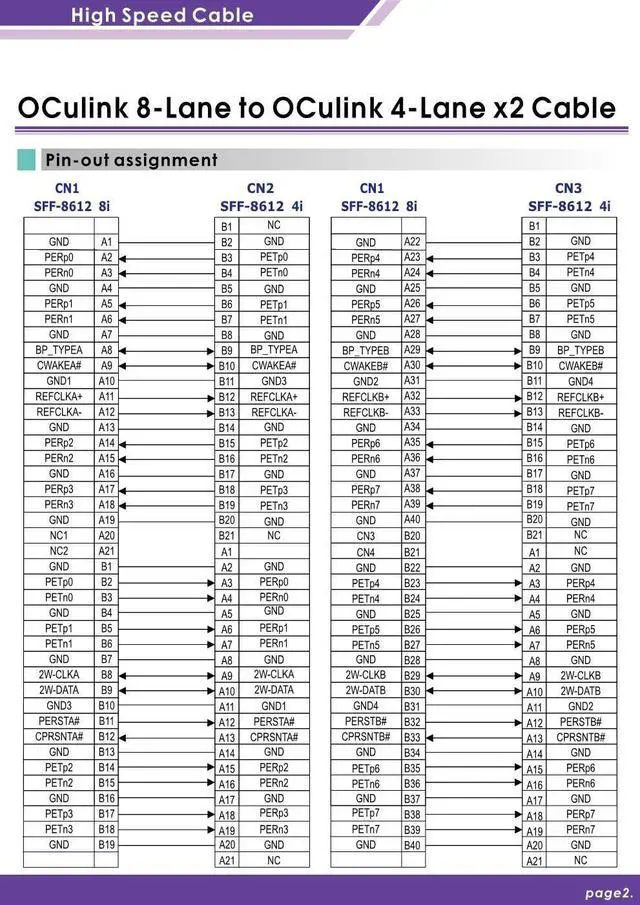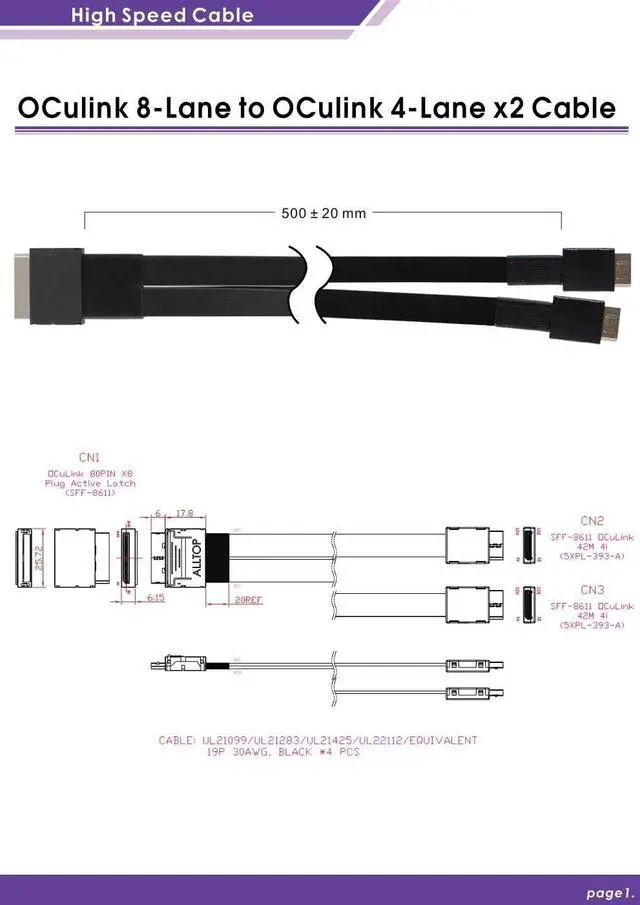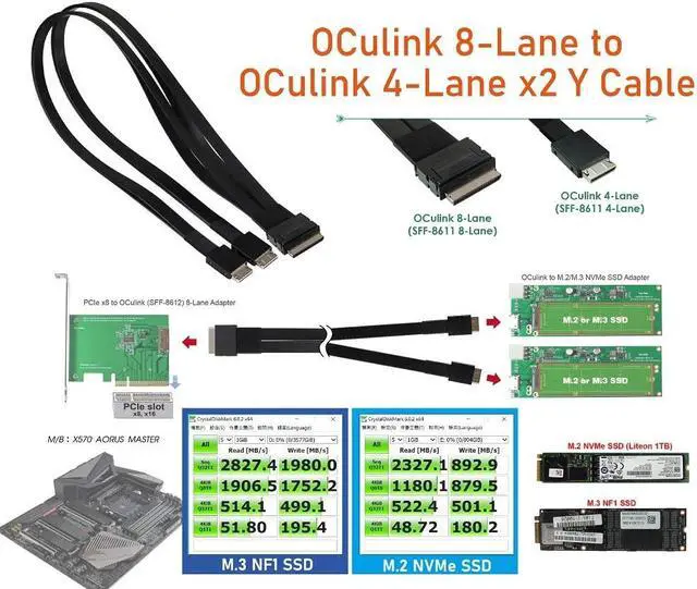 ?Oculink (SFF-8611) 8i to Oculink (SFF-8611) 4i 2-Port Y Cable Pin assigned by PCIe Gen 3 Cable Length