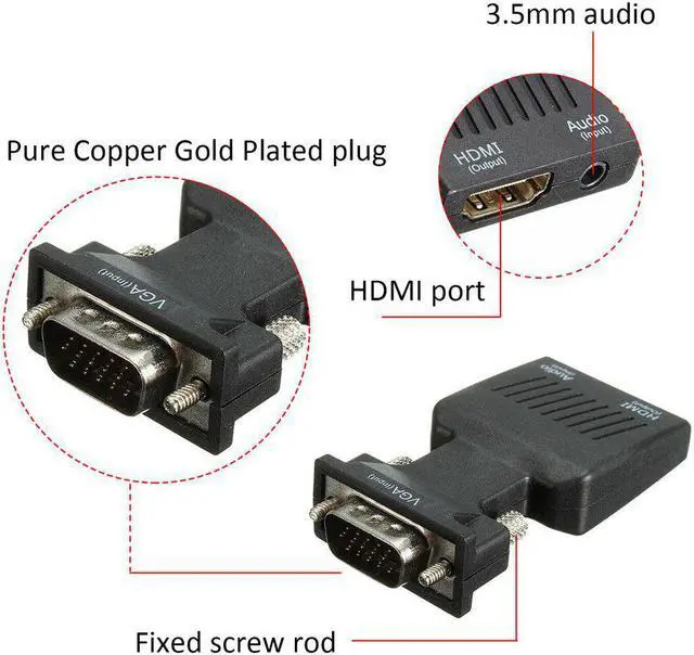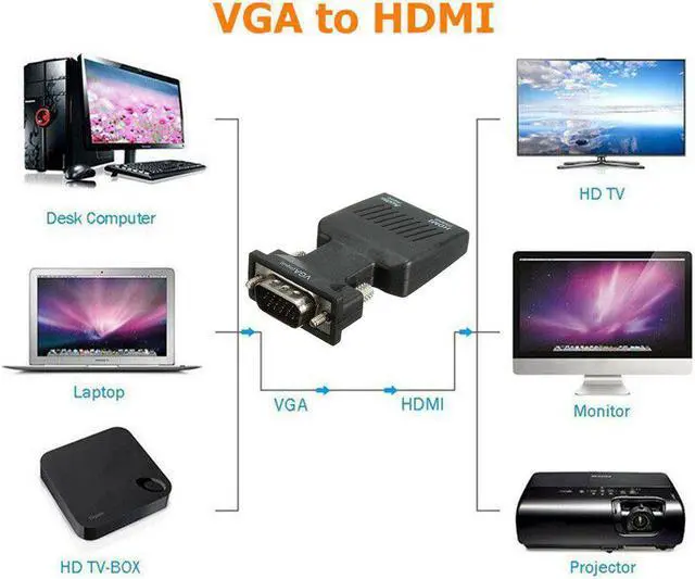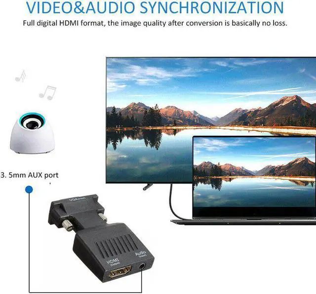 1.It is used to convert VGA video and 3.5mm analogue audio signal in your computer to HDMI signal and display it on the large screen of the HDTV