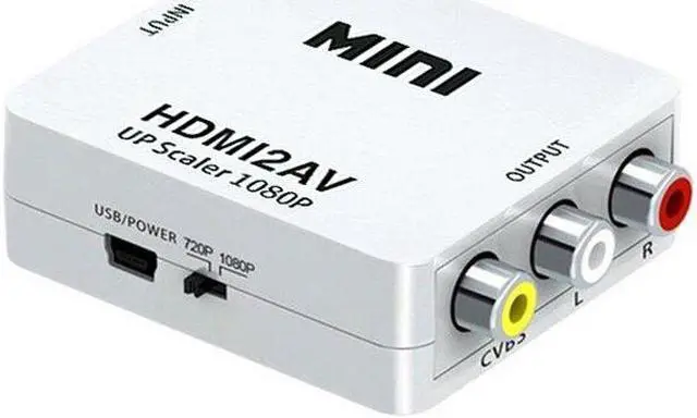 1PC HDMI TO AV Scaler Adapter HD Video Composite Converter Box HDMI To RCA AV/CVSB L/R Video 1080P Mini HDMI2AV Support NTSCDescription:1.Input ports: HDMI; Output ports: 3RCA (Yellow,White,Red)