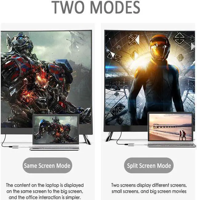 Multi DisplayYou can extend the computer screen to a large screen display or projector, set up duplication (mirroring), work in a large screen workspace, or use it for presentation with a projector etc. in mirror mode. While the two output ports working at the same time, the highest resolution of HDMI output is 1080P only.