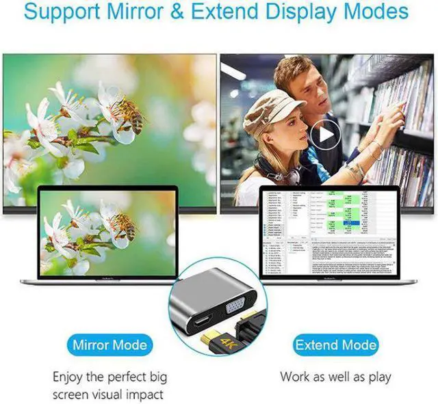 Vivid 3D Effect Video Sync] Mirror or expand your screen with USB C Adapter's HDMI and VGA ports to stream 4K UHD or Full HD 1080p video to HDTV, monitor or projector for cinema-like vision feast.