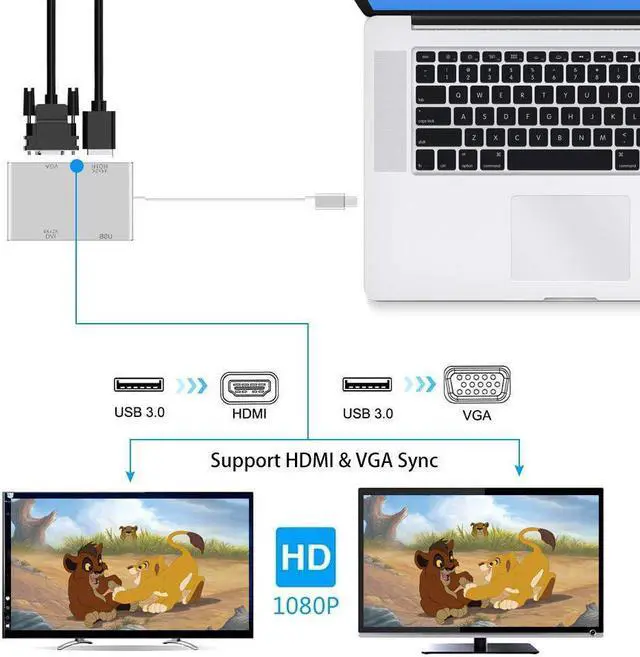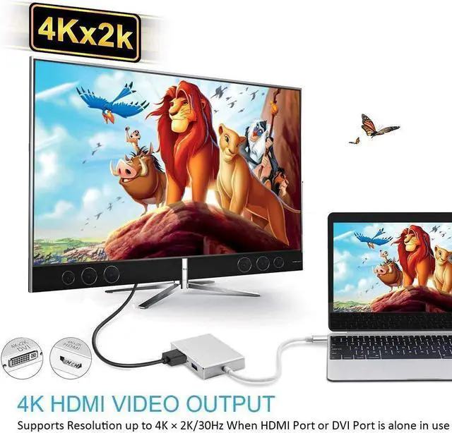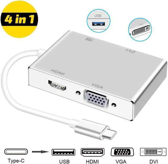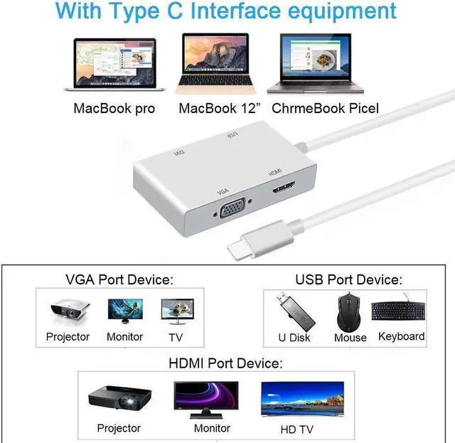 -C to HDMI/ VGA/ DVI Adaptor, is Compatible with Windows 10/8.1/8, Mac OS and chrome for connecting MacBook to HDMI/VGA/DVI-equipped monitor ;Plug & Play - No driver and power adapter is required.