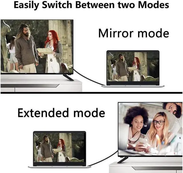 Mirror and Extended ModeThe two modes are easy to play not used to switch back to the window. In the mirror mode you can view the screen of the computer or desktop computer on the monitor or TV to ensure a better experience for you; in the extended mode you can connect the second monitor or TV to the computer to solve different needs at the same time work and entertainment are both correct.
