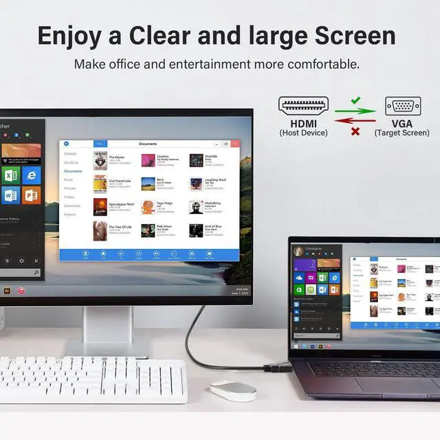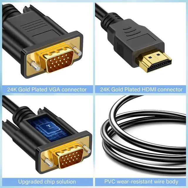 Superior Stability: HDMI VGA adapter cable with gold-plated connectors and built-in chip has super anti-interference to ensure stable signal transmission.
