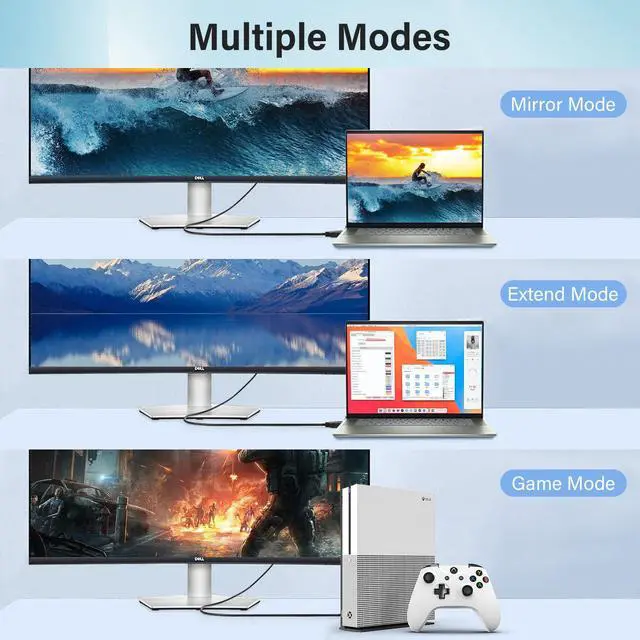 Extended mode: Perfect for you when you need an extra screen for presentations or watching movies on your laptop.
