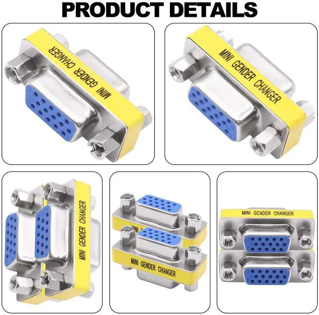 DB15 VGA Gender Changer Solderless Connector Female to Female Adapter D-SUB HD 15 Pin Serial Cable Coupler for PC Monitors Projectors-4pcs