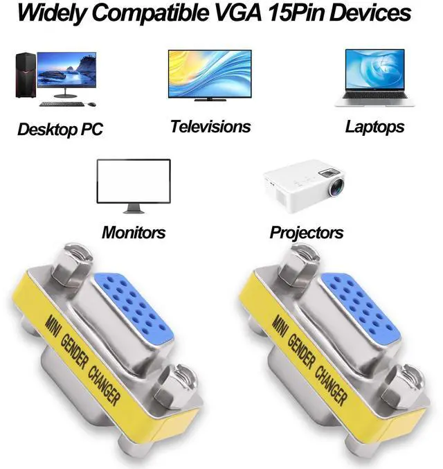 Allow you interconnect D-SUB 15 pin cables or devices,Such as computers,monitors, projectors, VGA splitter, KVM switch, television and other equipment for video signal transmission.