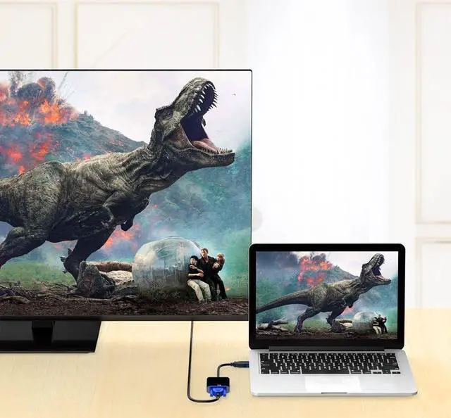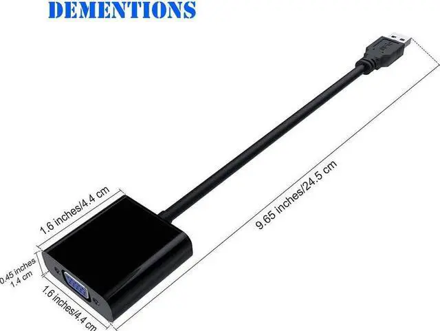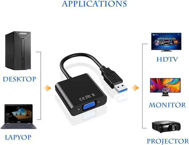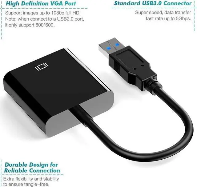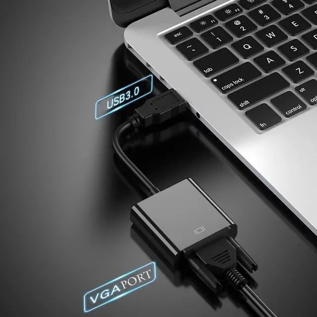 This USB 3.0 to VGA Adapter is used to connected a USB-enabled devices( such as laptop, desktop) with a VGA-enabled devices( such as monitor, projector, TV) for multi-monitor solution, extending working space with split-screen, mirroring display, etc