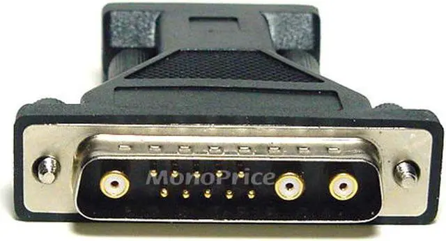 Connect an older Sun computer system with the 13W3 connector to a newer monitor with an HD15 VGA connector using this simple adapter. Alternatively, this adapter, in conjunction with PID 70, can be used to connect a Sun monitor to a Sun system, using a standard HD15 VGA M/F extension cable. The adapter has a male 13W3 plug for connecting to the Sun computer's video output and a female HD15 plug for connecting to the VGA cable from a standard VGA/SVGA monitor. Each end features plastic thumbscrews for securing the adapter to the device.