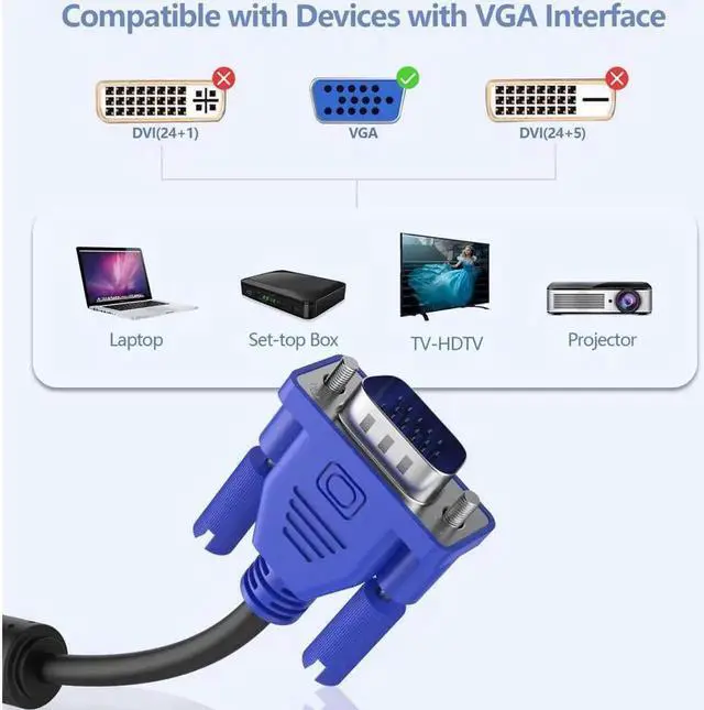 | Compatibility: | Desktop or laptop, projector or monitor, and other devices with a 15-pin female VGA p |