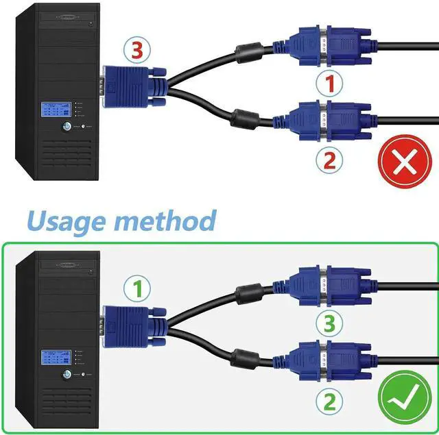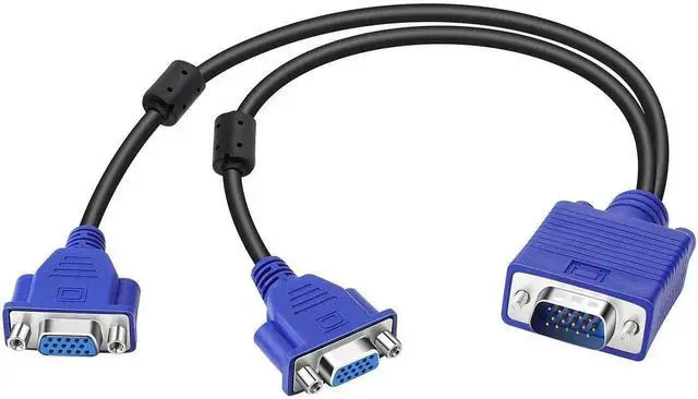 - VGA Monitor Y Splitter Cable will just duplicate the signal that it receives from a computer and then send the same picture to two identical screens/displays, and won't help you extend your desktop. Perfect for high resolution VGA applications, including security monitors, conference room presentations, or video in a house.