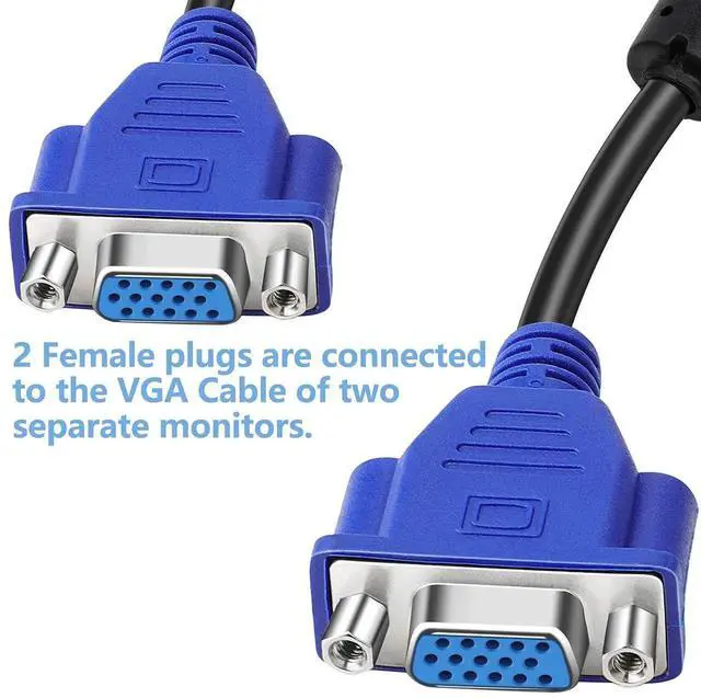 - The VGA splitter adapter cable sends the same VGA signal to two separate VGA monitors, thereby displaying the same image on both monitors at the same time.