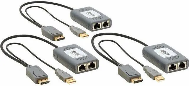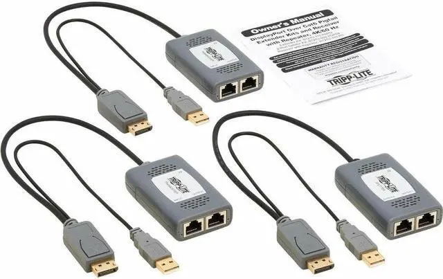 • roduct Description: Tripp Lite 2-Port DisplayPort over Cat6 Extender Kit, Pigtail Transmitter/2x Receivers, 4K 60 Hz, HDR, 4:4:4, 230 ft. (70.1 m), TAA - video/audio extender - DisplayPort - TAA Compliant