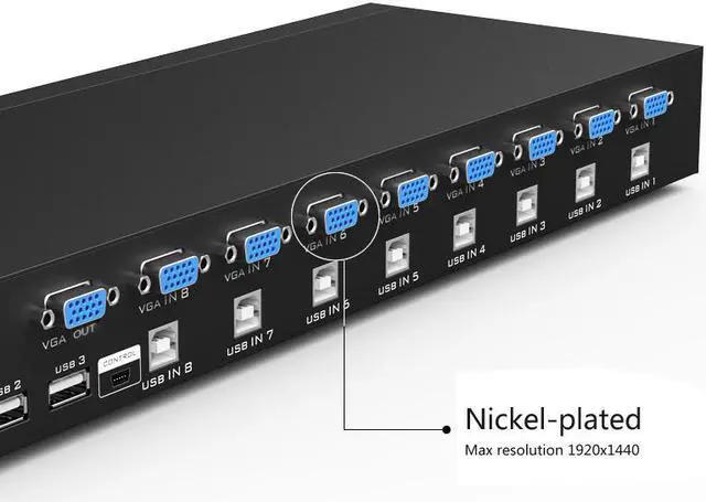 Bandwidth: 250MHz No need software, press button to select which computer to operate No need power supply Hog plug and swap, do not need to turn off the KVM switch and computer when plug or unplug the connected computer.