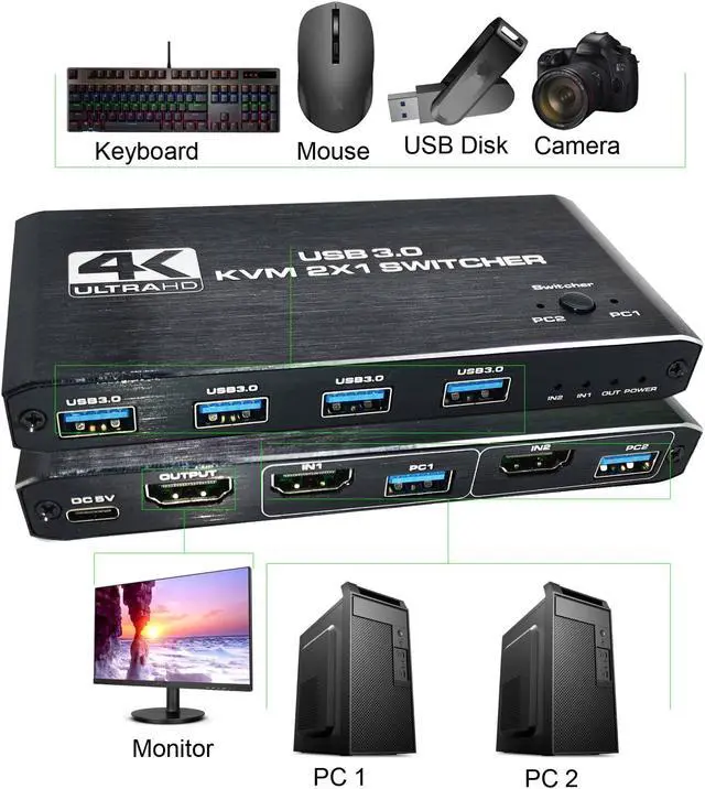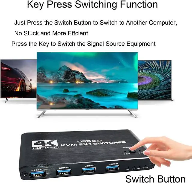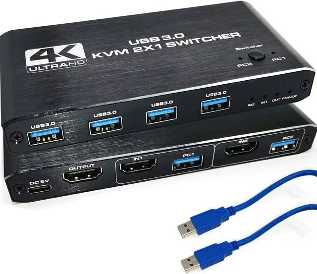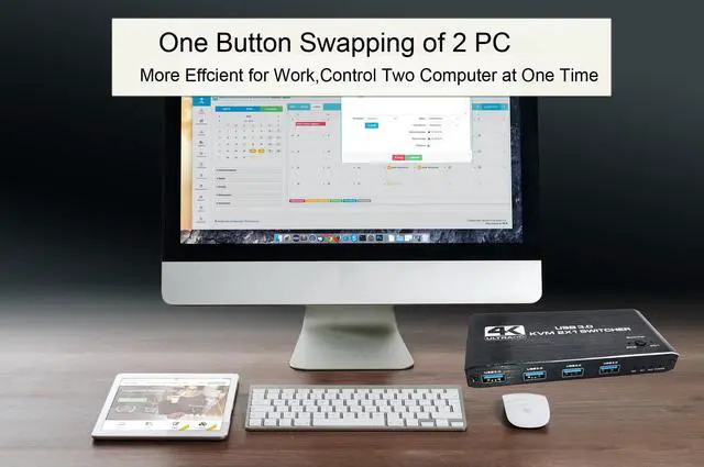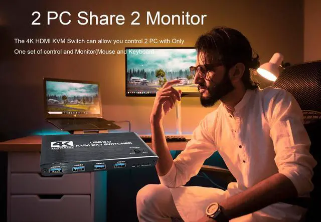 4K HDMI KVM Switch Box allows you to control 2 computers with just one set of controls and display (mouse and keyboard). Built-in high-performance chip, using high-tech decoding, plug and play, no driver required. This would be a good choice for businesses, offices, multimedia teaching, meeting rooms, game rooms, home theaters, research testing, and more.
