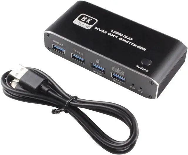 USB 3.0 Switch KVM This HDMI 2.1 KVM Switch comes with 4 USB ports (2 USB 2.0 ports for mouse and keyboard, and 2 extra USB 3.0 standby ports for more useful connections).