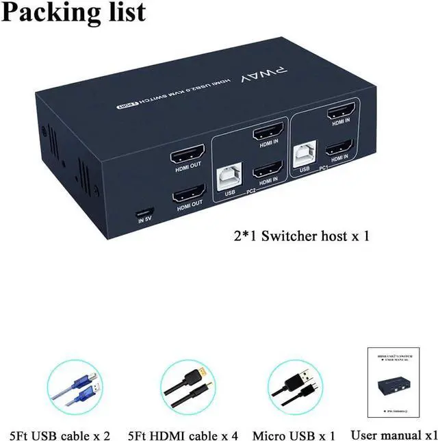 POWERED BY USBIt means powered by USB cables, no need external power adapter, just connect you switcher devices to enjoy, it make you work and life easier and simpler. Come with 1 Micro USB power cord for power supply.