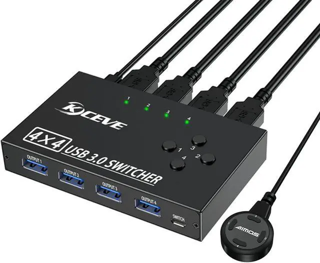 4 in 4 Out USB 3.0 Switch SelectorMLEEDA 4 Port USB 3.0 Switcher allow using button switch or wired remote to toggle between 4 computers to share 4 USB peripheral devices without constantly pull cables or set up complicated network sharing software.