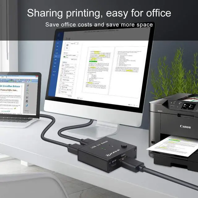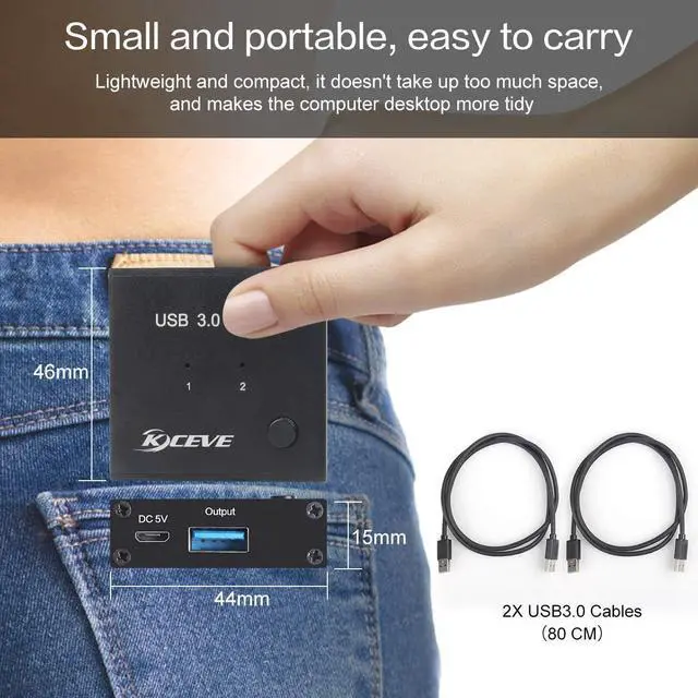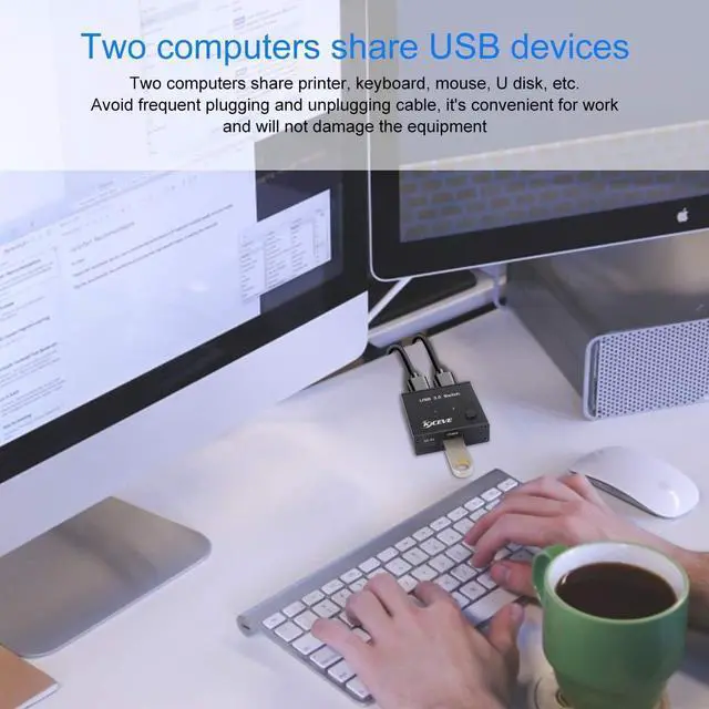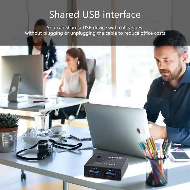 USB 3.0 switch for 2 computers, two computers can be switched freely via a button to share 1 USB 3.0 peripheral devices. For example, it's convenient for 2 computers to share 1 printer. Good helper for work!