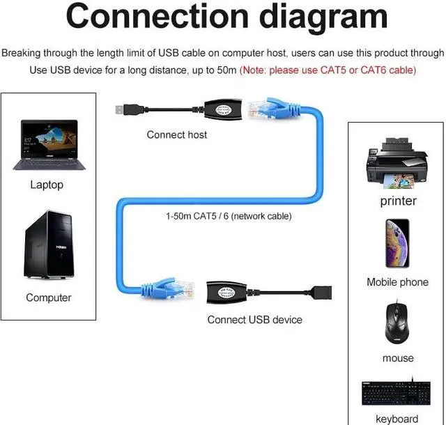 Uses standard Cat5/Cat5E/Cat6 patch cord