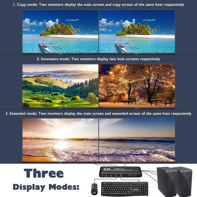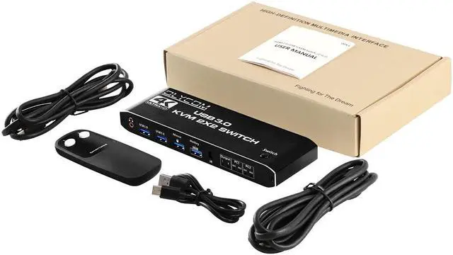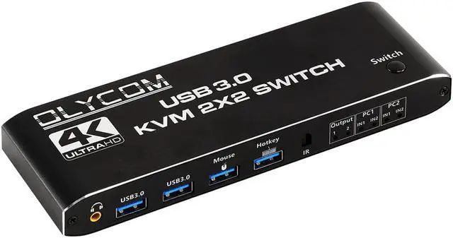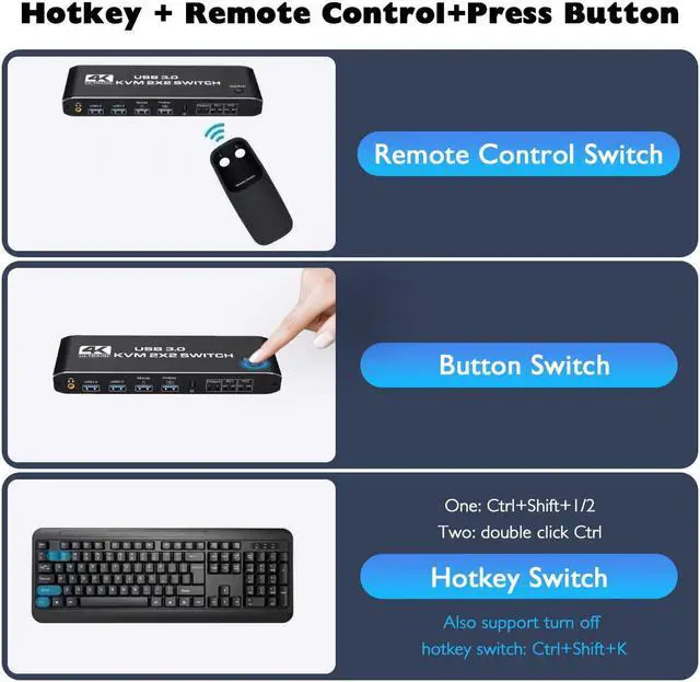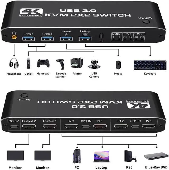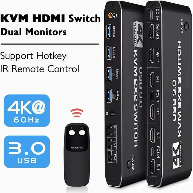 HDMI KVM Switch 2 In 2 Out and 4Port USB3.0 4K@60Hz KVM Switcher Support 2 Monitors 2 Computers Dual Display Ports With Remote Control HotKey and Audio