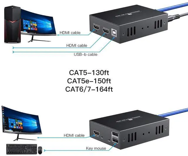 - Hdmi Over Ethernet : Transmit Up To 50M/164Ft By Cat6/7 Cable, 40M/130Ft By Cat5E Cable. For Better Audio&Amp;Video Quality And Longer Transmission Distance, We Recommend Cat6 Or Cat7.