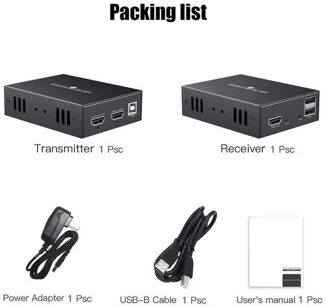 Hdmi Kvm Usb Extender Transmit 1080P Hd Video Over Cat5E/6 Ethernet Cable 50M (164Ft) For Mouse And Keyboard Control Remote Signals