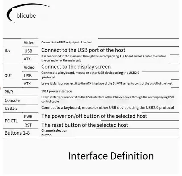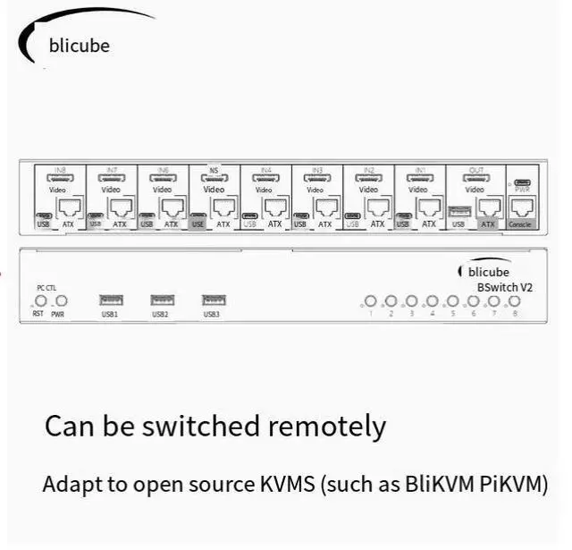The BliKVM switch v2 HDMI switcher is an eight-in and one-out remote switching and remote control combination