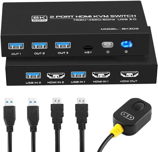 [You Will Get] 8K KVM switch*1, HDIM 2.1 Cable*2, USB 3.0 cable*2, wired remote*1, user manual*1. We will provide you with a one year warranty.