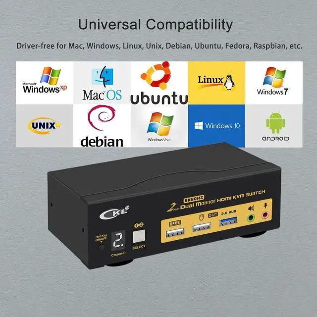 2x2 KVM SWITCH HDMI 8K 60HZ 4K 144HZ : Newest HDMI 2.1 technology to achieve max. Resolution of 7680*4320@30/60Hz, 5120*2880/1440@50/60Hz, 3840*2160@144Hz, 3440*1440@144Hz, 3840*1080@240Hz, 2560*1440@144Hz, ideal for high resolution needs and gaming without delay. Supports EDID emulation to maintain correct display.