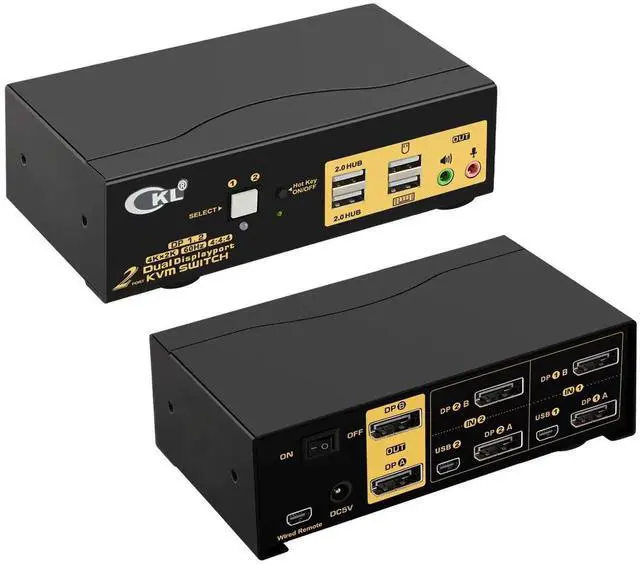 [Dual MONITOR KVM SWITCH 4K 60Hz 4:4:4]Conforms to DP 1.2 standard for resolution up to 4096x2160@60Hz, 3840x2160@60Hz and downwards; Resolution is subject to adapter if used any; Make sure to use reliable adapters to avoid display issue.