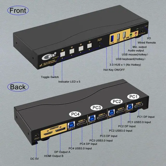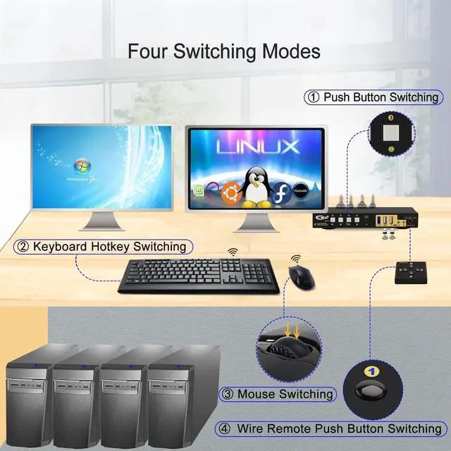 [Effortless Switching Modes]Easily switch between personal computer and work laptop via push button, keyboard hotkey, mouse hotkey and wired remoter.