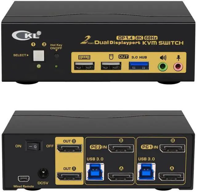 RESOLUTION: DP 1.4 KVM Switch supports max. resolution of 8K@60Hz for dual DP input on a single monitor, 8K@30Hz, 5K@50/60Hz,4K@144Hz, 2K@144Hz and downwards. Final resolution is also subject to graphic cards, monitors, cables and adapters (if any) and how those work together;