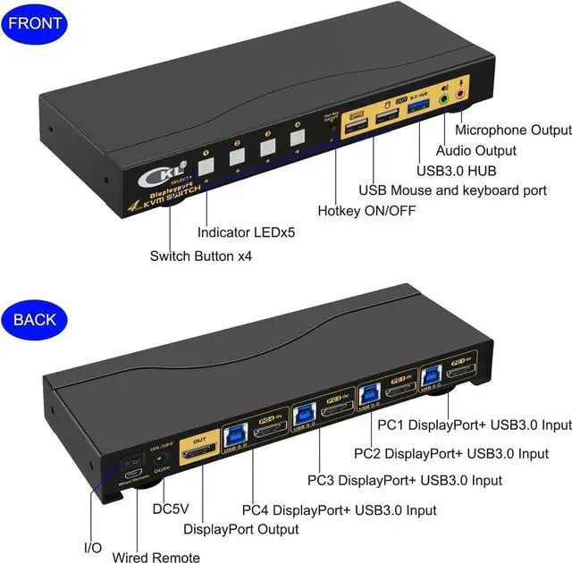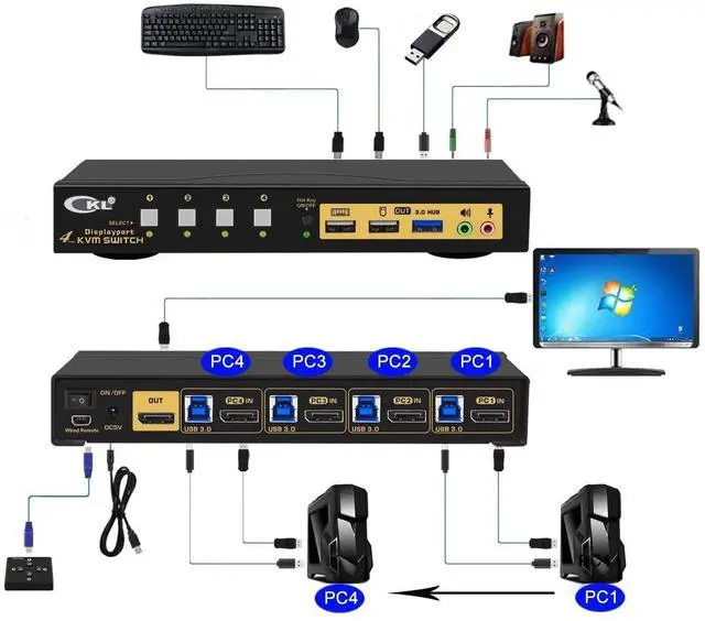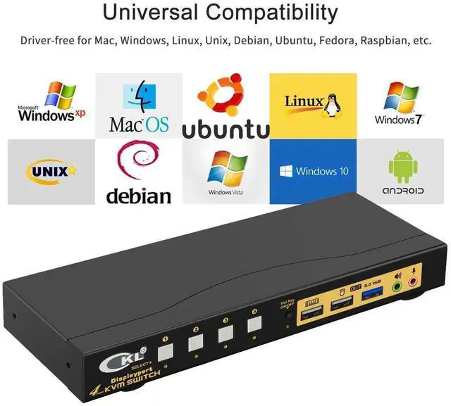 CAPABILITIES: This KVM Switch DisplayPort helps you to Hook up 4 computers or laptops to share one set of keyboard, mouse and monitor, with 1 extra high speed USB 3.0 hub ports for more peripherals; Perfect for IT specialist, gaming, multi tasks and WFH (work from home);