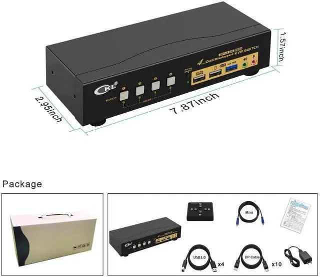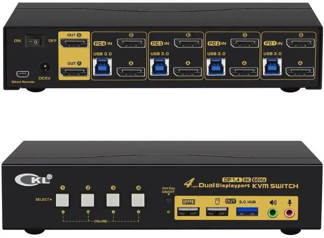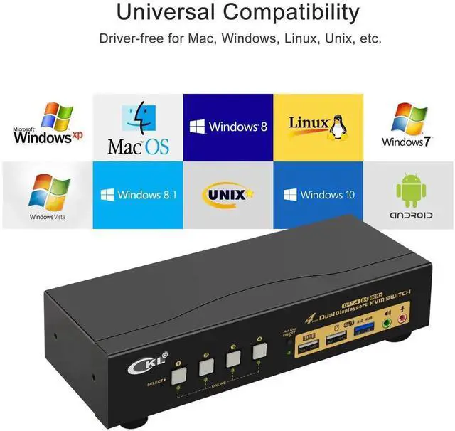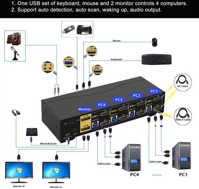CAPABILITIES: This KVM Switch Dual Monitor DisplayPort helps you to Hook up 4 computers or laptops to share one set of keyboard, mouse and dual extended or mirrored monitors, with 1 extra high speed USB 3.0 hub ports for more peripherals; Perfect for IT specialist, gaming, multi tasks and WFH (work from home);
