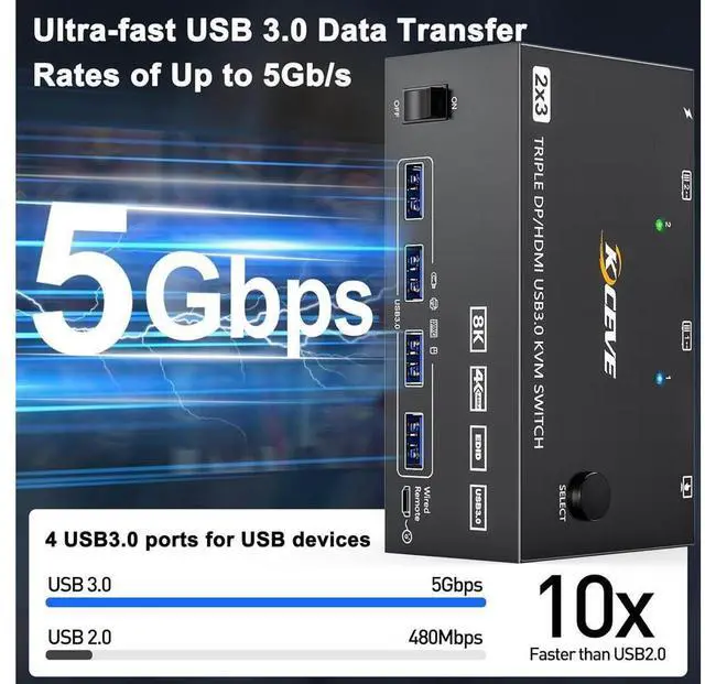![Alt view image 5 of 7 - Triple Monitor 2 Displayport + HDMI KVM Switch 8K@60Hz 4K@144Hz, [HDMI + 2 Displayport] KVM Switch for 2 Computers Share 3 Monitors and 4 USB 3.0 Device, with Wired Remote and 5 Cables eokCXOY](https://c1.neweggimages.com/productimage/nb640/C2AGS25110408D96PBA.jpg)